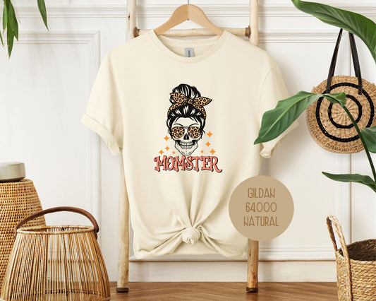 Momster Skeleton Leopard Messy Bun Halloween Shirt