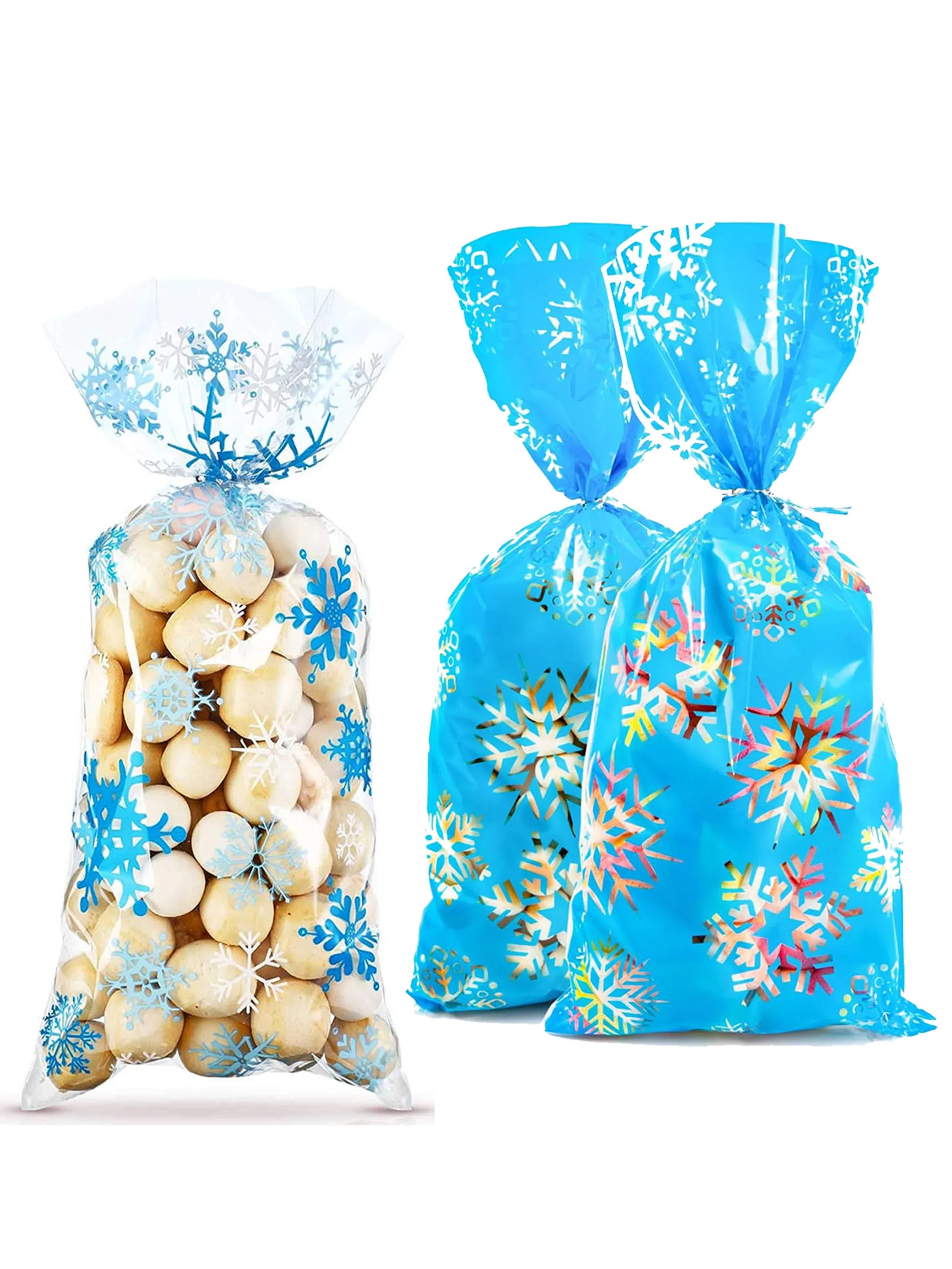 10/20/30/40/50/100pcs Christmas Cellophane Bags Snowflake Treat Bag Winter Goodie Bag Blue Plastic Snowflake Bag with Twist Ties