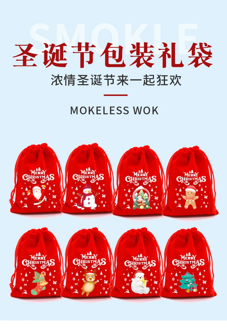 Christmas Velvet Bags 9x12cm 13x18cm Small Candy Gifts Bag Drawstring Pouch Xmas Decoration Favor Bracelet Jewelry Packaging Bag