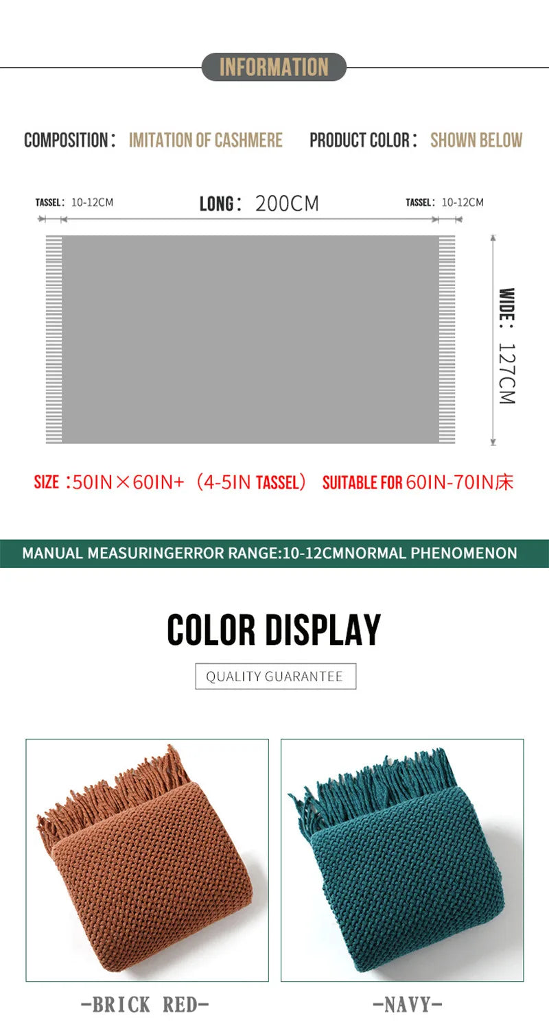 Textile City Nordic Knitted Throw Blanket Shawl Sofa Blanket Soild with Tassels Sofa Scarf Emulation Fleece Bedspread Decor
