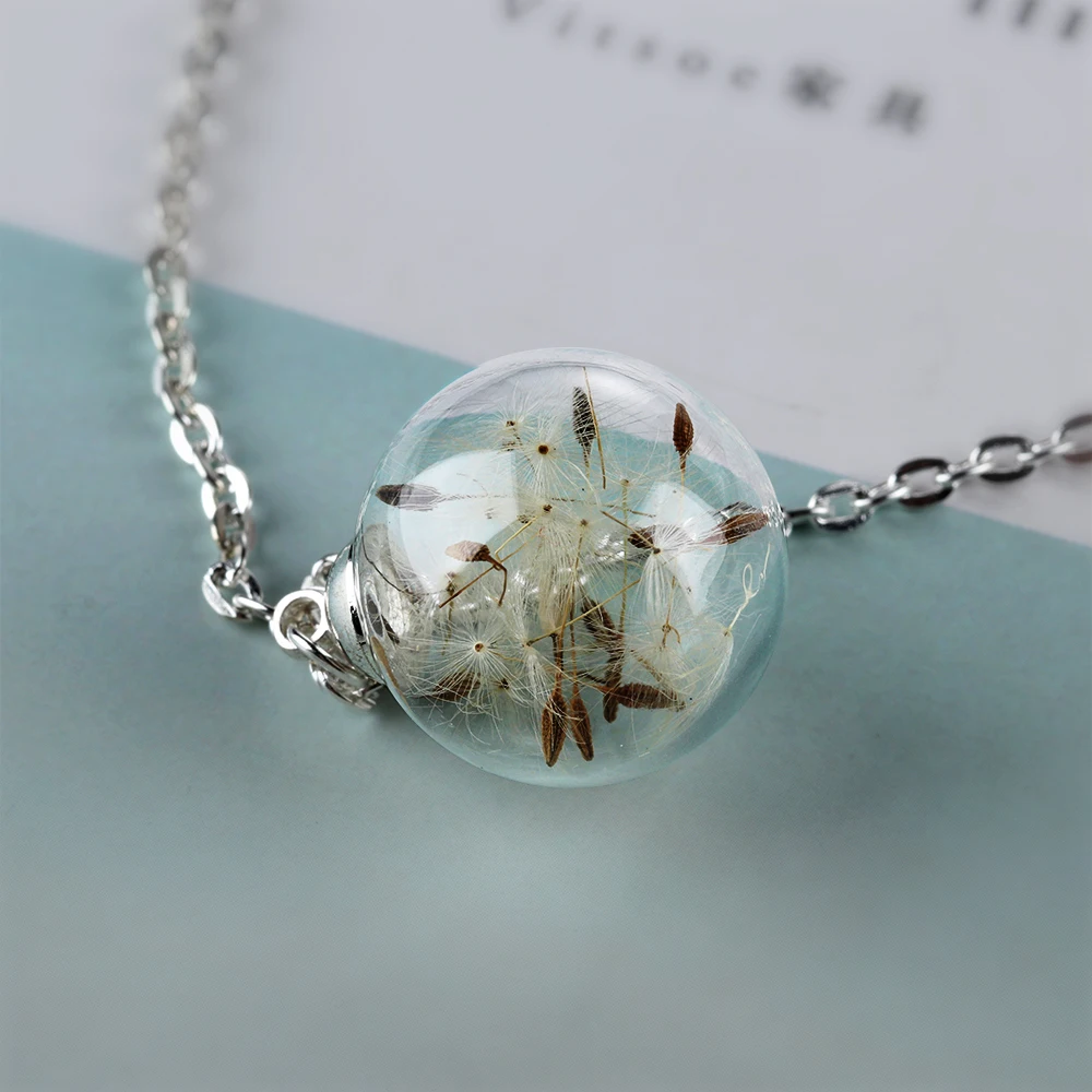Transparent Glass Vial Necklace Wishing Bottle Dried Flower Pendant Jewellery Openable Screw Cap Steel Chain Charm Perfume Jars